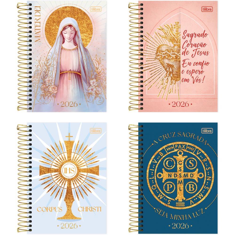 Com inspiracao religiosa, a agenda Louvor da Tilibra tem capa dura com detalhe metalizado, bolsa plastica, adesivos e visao diaria e mensal. Ideal para organizar os compromissos com fe e praticidade.