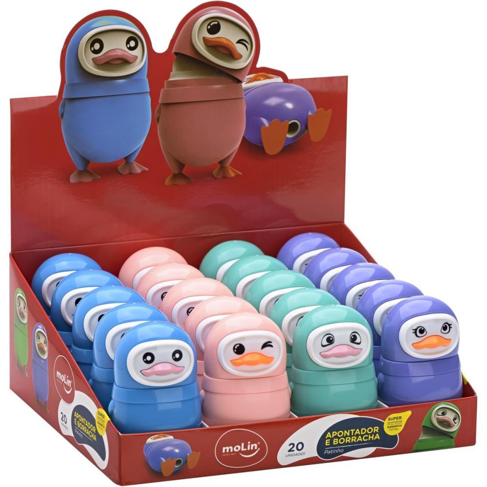Apontador com Deposito Decorado Patinho com Borracha 4 Cores - Molin