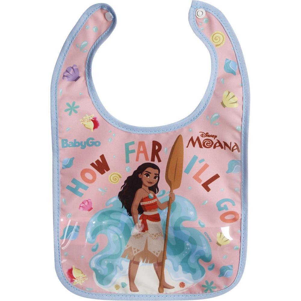 Babador decorado Moana Disney. Feito em PVC atoxico e poliestireno.