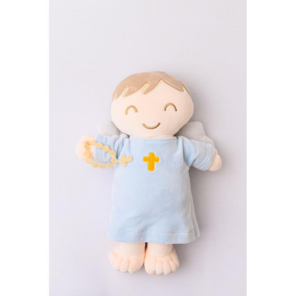 Tamanho: 32cm x 15cm Anjo da Guarda em plush com acabamento delicado e detalhes bordados. Desenvolvido para proporcionar carinho, imaginacao e conexao afetiva. Produto lavavel, confeccionado com material antialergico e com certificado de seguranca, garantindo qualidade, conforto e tranquilidade para toda a familia.
