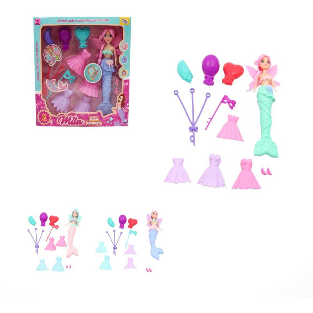 BONECA MILA SEREIA COM 12 PECAS PARA BRINCAR DE TROCAR.