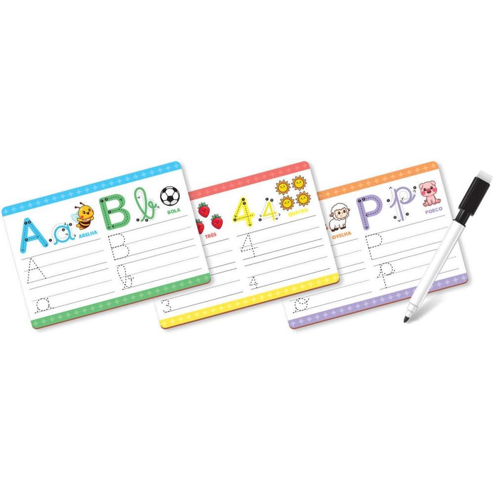 Caderno de Caligrafia Apagavel GGB - Mundo Curioso Pratique a escrita e os numeros de forma divertida e reutilizavel com o Caderno de Caligrafia Mundo Curioso da GGB! Perfeito para as criancas que estao comecando a tracar as primeiras letras e numeros, este caderno permite que elas escrevam, apaguem e refacam quantas vezes quiserem. • O que vem no kit: Caderno de caligrafia com paginas plastificadas e 1 canetinha com apagador na tampa. • Conteudo pedagogico: Atividades para praticar o tracado de letras maiusculas e minusculas, numeros e desenhos simples. • Beneficios: Estimula a coordenacao motora fina, o aprendizado da escrita e a autoconfianca da crianca.