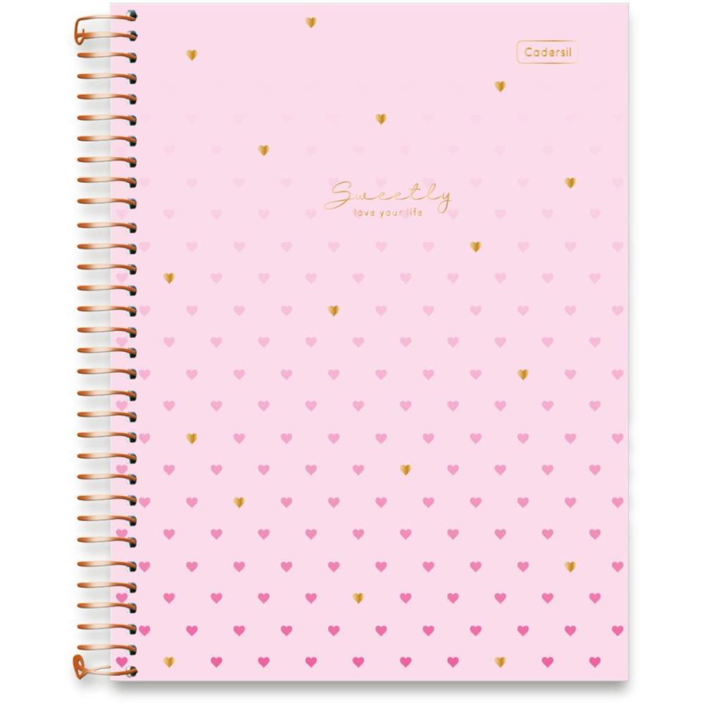 A linha Sweetly traz a delicadeza dos tons pasteis! Com capa dura com hot stamping dourado, o caderno universitario + planner conta com calendario de 2 anos, planejamento anual e mensal, alem das folhas pautadas, e uma folha quadriculada e pontilhada e todo o charme da cartela de adesivos funcionais que deixa a rotina pratica. DETALHES Capa: dura, laminacao fosca com aplicacao de hot stamping dourado Espiral: dourado Folhas: 168, sendo 8 folhas com elementos de planner e 160 folhas brancas com pauta preta e microsserrilhas Acessorios: bolsa portfolio, cartela de adesivos, editorial, divisorias, calendario de 2 anos, planejamento anual e mensal, folha pontilhada e quadriculada Formato miolo: 199mm X 270mm Gramatura: papel 56gm