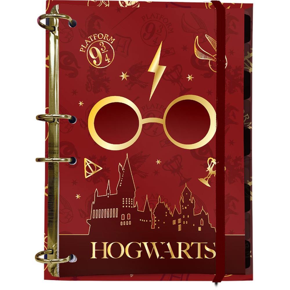 Estilo, praticidade e magia! O Fichario Colegial Harry Potter da DAC e compacto e ideal para levar na bolsa. Com capa em vermelho e dourado, detalhes em verniz localizado e Hot Stamping, ele traz o universo de Hogwarts para o dia a dia. Possui fechamento em elastico e acompanha 144 folhas decoradas com as casas de Hogwarts.
