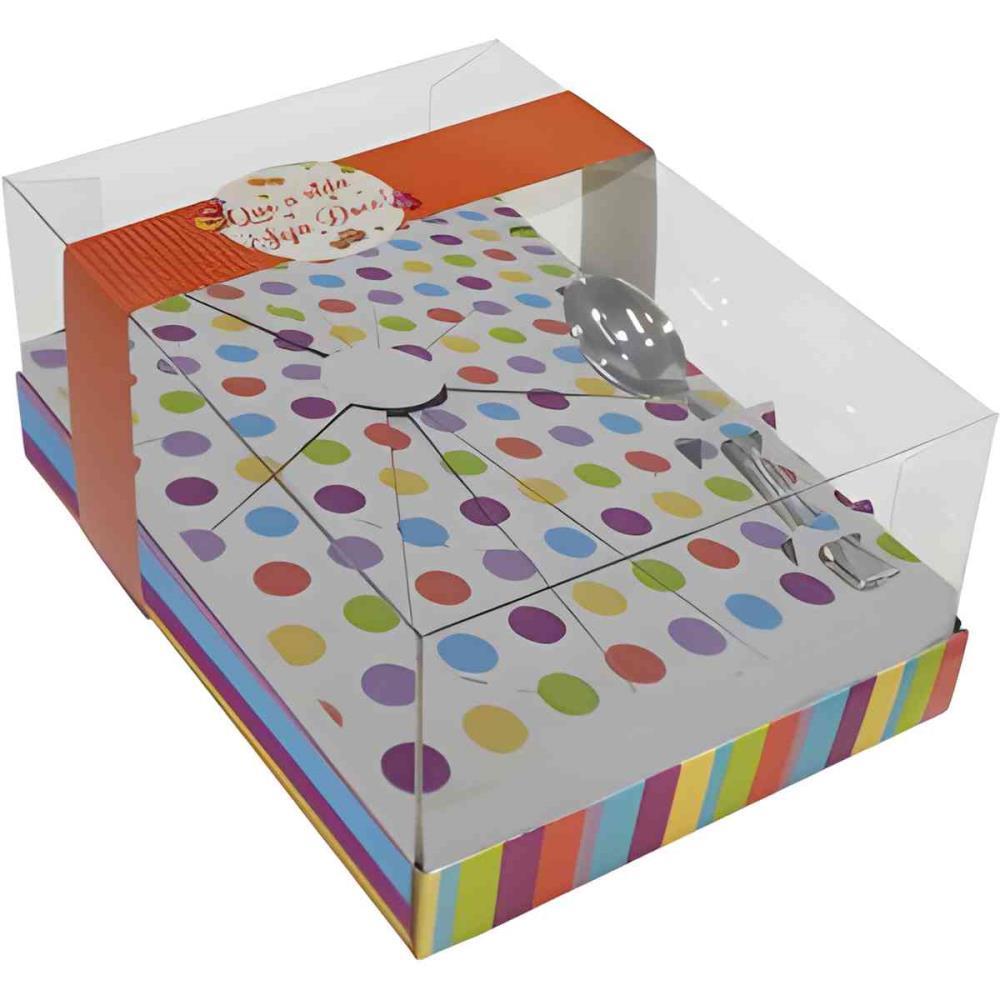 A Caixa Ovo de Colher 350g e ideal para chocolateiras artesanais que trabalham com ovos de colher menores e bem elaborados. Produzida em papel cartao resistente, com tampa em acetato transparente, valoriza o acabamento do chocolate e permite a visualizacao completa do ovo e do recheio.