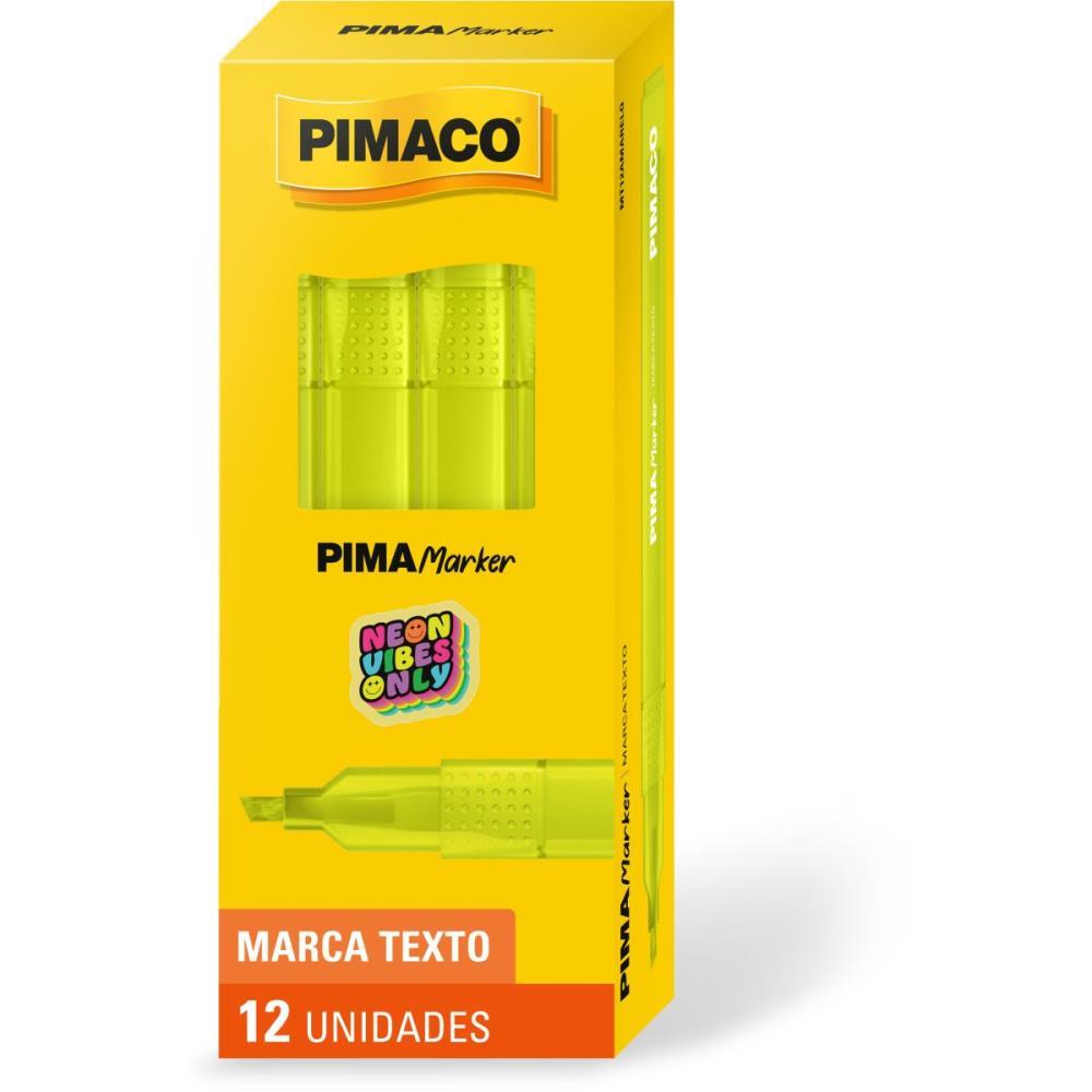 Conjunto de marcadores neon com 12 unidades, oferecendo uma cor, amarelo vibrante, para destacar e organizar informacoes.