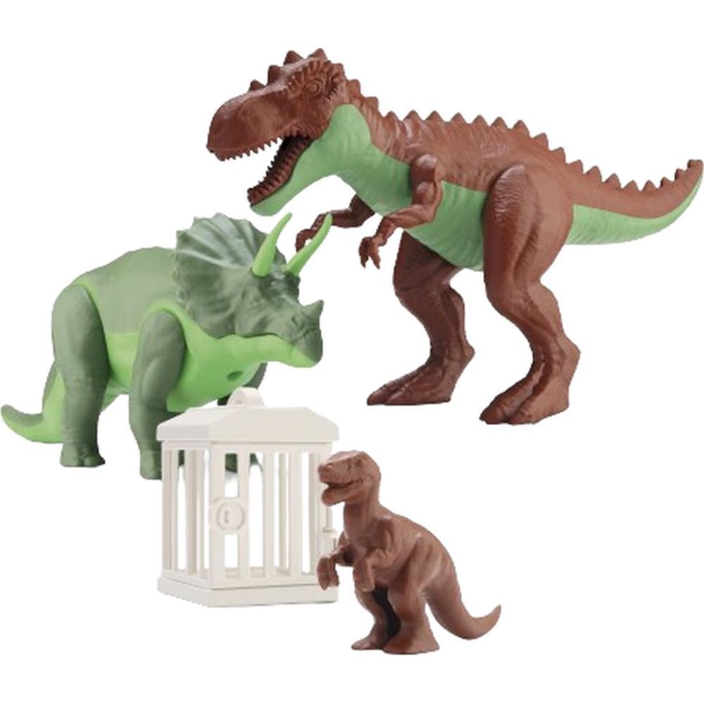 Vem com uma jaula reforcada e os dinos sao todos articulados, permitindo que explorem o fascinante universo
