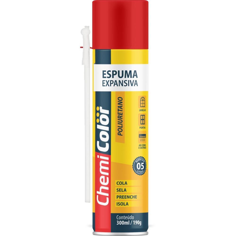 A Espuma expansiva de Poliuretano da Chemicolor foi desenvolvida para vedacoes de infiltracoes e isolamento termico e acustico, especialmente em quadros de portas.