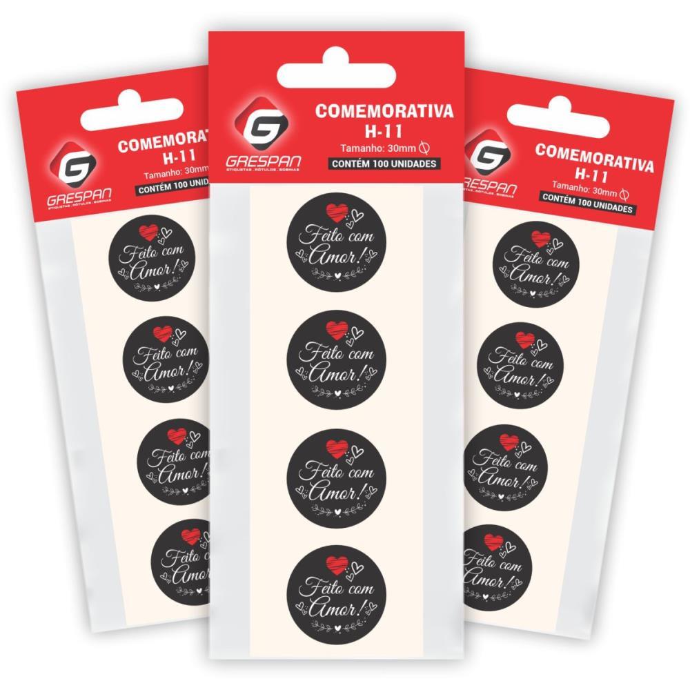 Etiqueta Para Presente Feito Com Amor Preto Redondo - Grespan