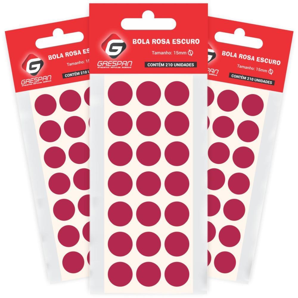 Etiqueta redonda rosa escura 15mm. c/210 etiq. - grespan (cartela)