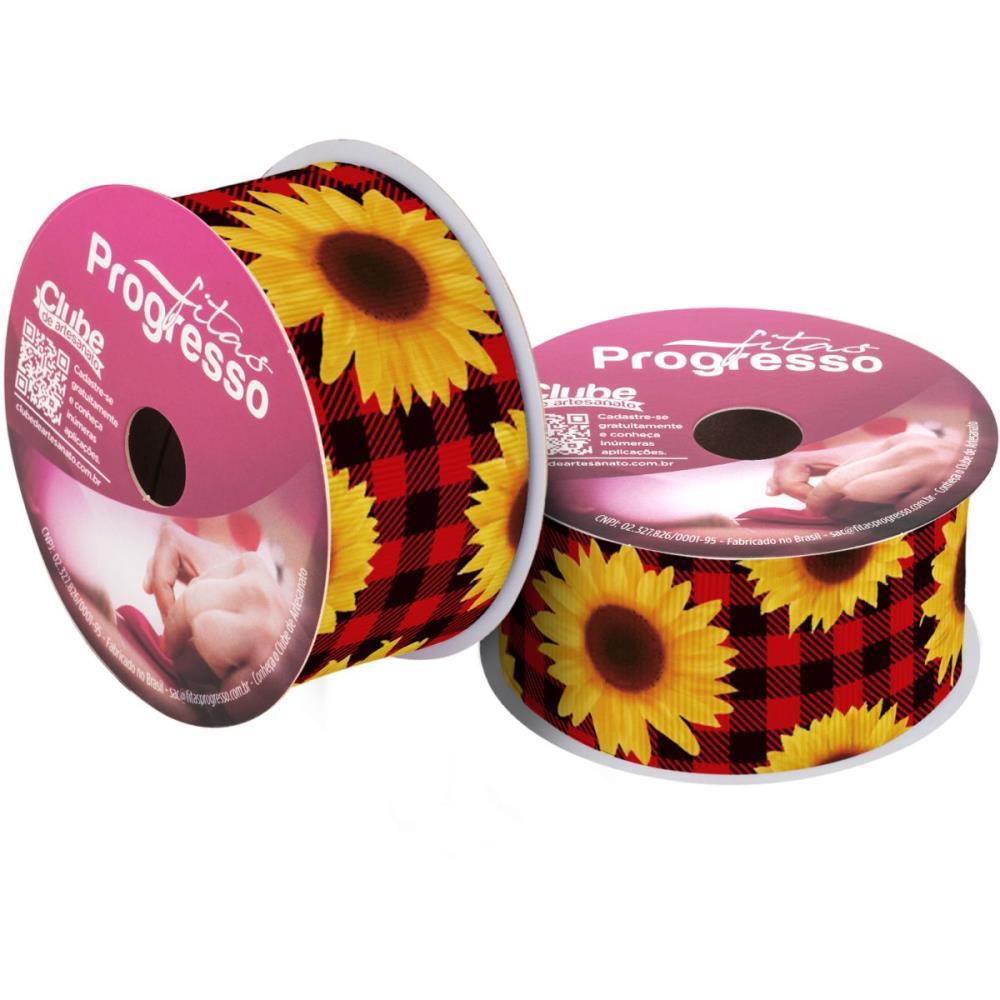 Festa Junina Fita Cetim 38mmx10metros Girassol - Fitas Progresso