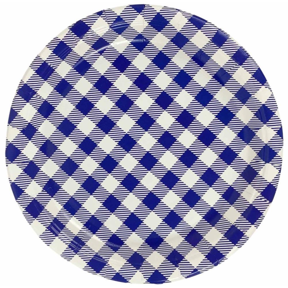 O Prato de Papel Xadrez e perfeito para servir as delicias do seu Arraia com estilo e praticidade. Com a classica estampa azul e branca, remete as festas juninas e torna o momento de saborear bolo de milho ou pamonha ainda mais festivo. Fabricado em papel resistente, oferece seguranca aos convidados e facilita a limpeza apos a festa. Seu design combina com outros itens rusticos, como cestos de vime e palha, criando uma mesa harmoniosa e charmosa.