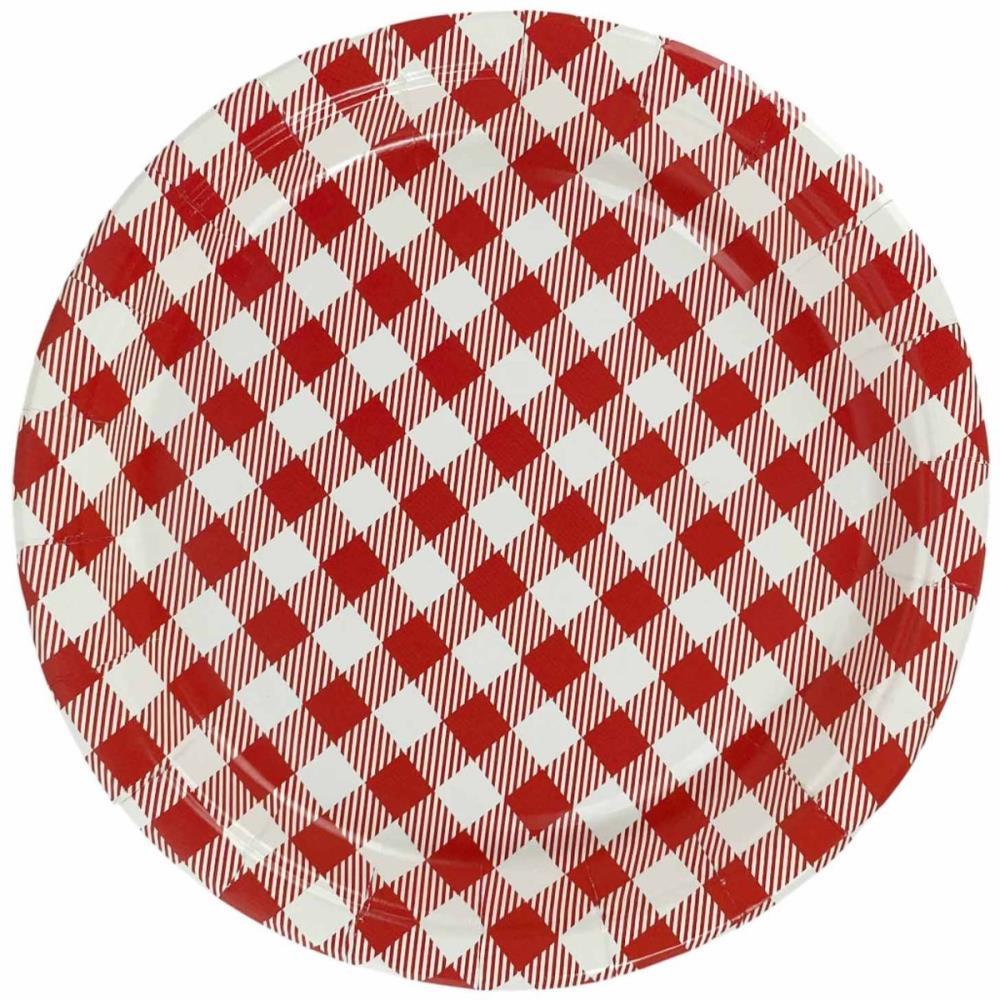 O Prato de Papel Xadrez e perfeito para servir as delicias do seu Arraia com estilo e praticidade. Com a classica estampa vermelho e branca, remete as festas juninas e torna o momento de saborear bolo de milho ou pamonha ainda mais festivo. Fabricado em papel resistente, oferece seguranca aos convidados e facilita a limpeza apos a festa. Seu design combina com outros itens rusticos, como cestos de vime e palha, criando uma mesa harmoniosa e charmosa.