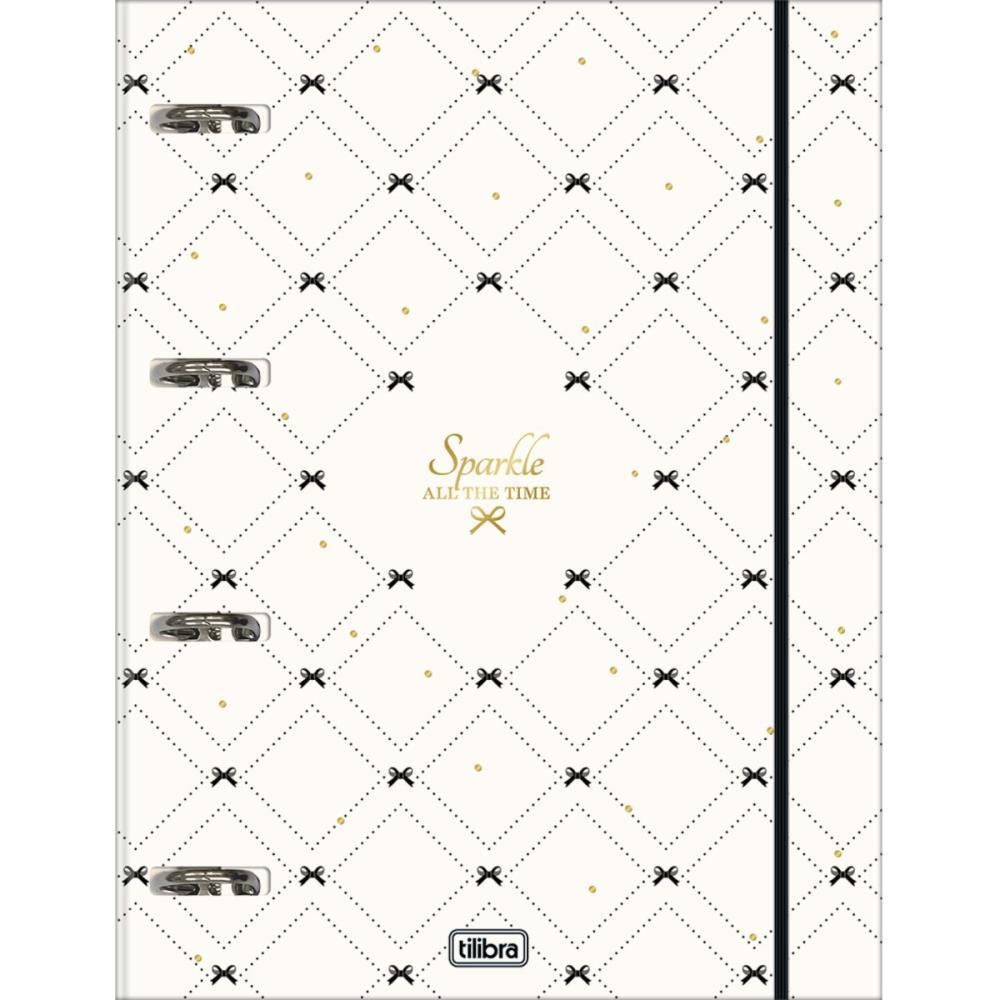 O caderno argolado Tilibra possui capa dura com detalhe metalizado, elastico e parte interna decorada, oferecendo um visual moderno e sofisticado. O produto tambem vem com adesivos, bolsa plastica para guardar trabalhos e anotacoes e refil de 48 folhas pautadas e decoradas. Adquira agora o seu!