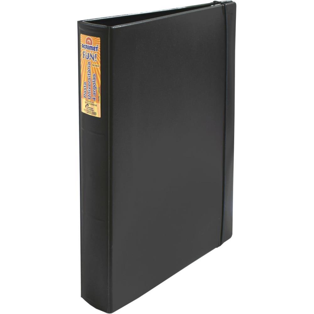 Fichário fabricado em uma única peça de polipropileno, oferece alta resistência e durabilidade. Tamanho A4. Ferragem com quatro argolas em ´´D´´, que acomodam melhor as folhas de papel. Possui fechamento em elástico.