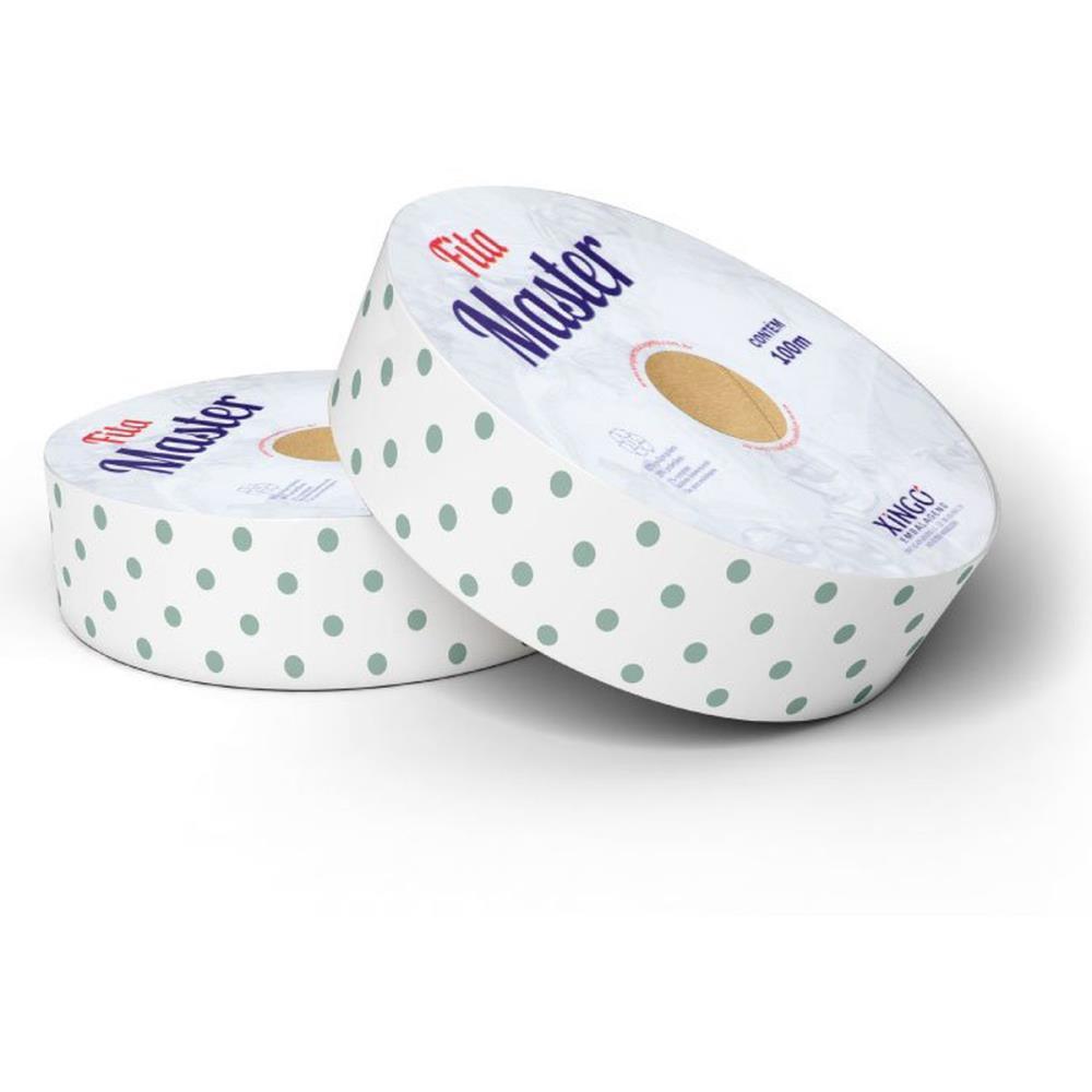 Fita de poli, decorada com estampa de bolinha, poa, qualidade Master. Ideal para lacos e fechamento de embalagens para presente, vasos e bouquets de flores, cestas e decoracoes em geral.
