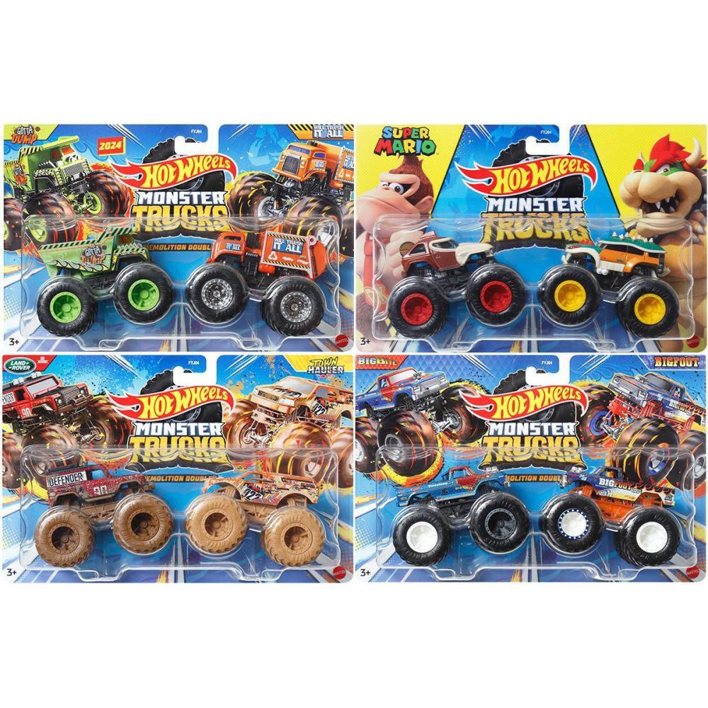 Os Monster Trucks Demolition Doubles™ da Hot Wheels® em escala 1:64 estão prontos para esmagar seus rivais! Esses dois pacotes da Monster Trucks para ataques épicos são propositalmente combinados para batalhas cara a cara com suas rodas gigantes e grandes personalidades! Cada pacote inclui dois oponentes e a embalagem fornece informações sobre cada um, incluindo nome, tipo de caminhão, força, ataque de colisão exclusivo e motivação para uma excelente narrativa! Cada uma vendida é separadamente, sujeita a disponibilidade. Cores e decorações podem variar.