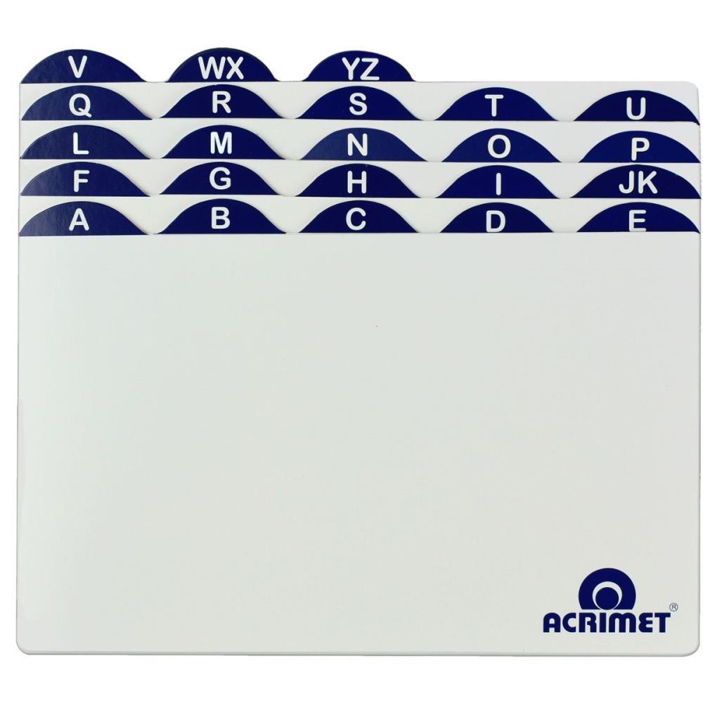 Com o Índice para Fichas 6x9 Acrimet você deixará o seu fichário de mesa mais organizado e sofisticado. Desenvolvido em cartão envernizado, ele possui abas de identificação ordenadas de A/Z com impressão em azul, que proporciona facilidade na hora de padronizar suas fichas. Perfeito para usar no escritório!