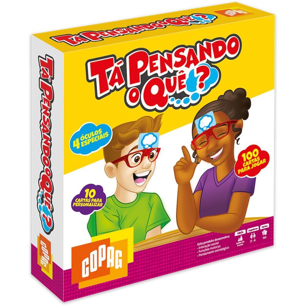 Tá Pensando o Quê? É um jogo de criatividade e de muita diversão, onde cada jogador deve adivinhar a imagem que está em sua carta. Use a imaginação para fazer as perguntas mais inusitadas aos outros jogadores. A cada rodada seja criativo e faça perguntas certas para que possa avançar no tabuleiro e vencer a partida antes dos outros jogadores.