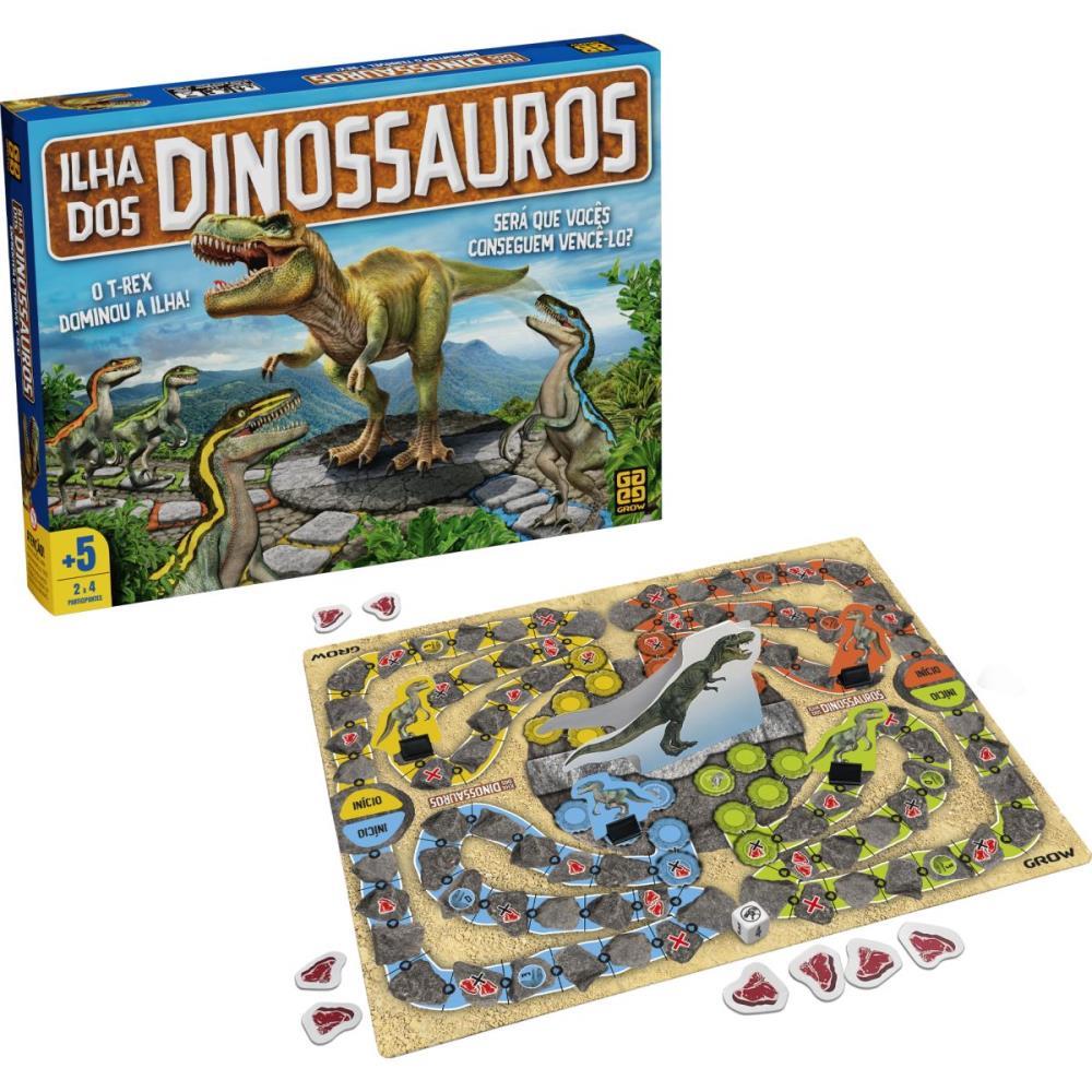No jogo Ilha dos Dinossauros os jogadores devem tentar chegar ao centro do tabuleiro para derrotar o T-rex que está monopolizando o alimento da Ilha.