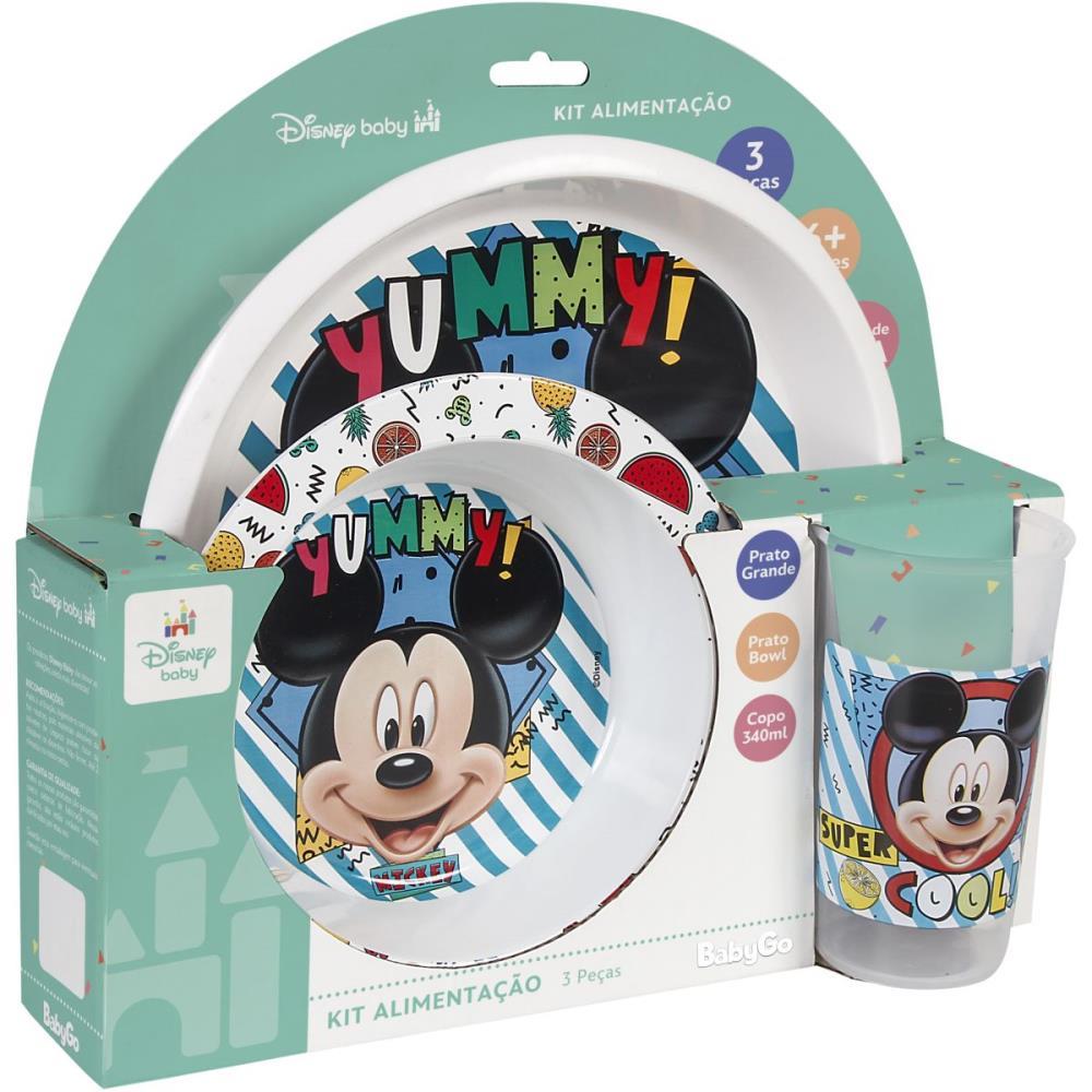 Kit alimentacao Mickey 03 pecas prato grande, prato bowl e copo 340 ml.