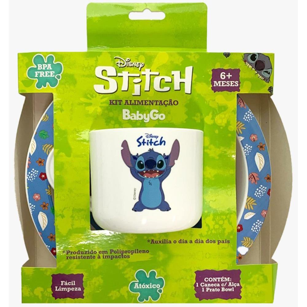 Esse kit BabyGo possui o prato bowl com capacidade de 450 ml e uma caneca com capacidade de 200 ml. Otima opcao para presentear as criancas que amam o personagem mais querido do momento Disney Stitch.