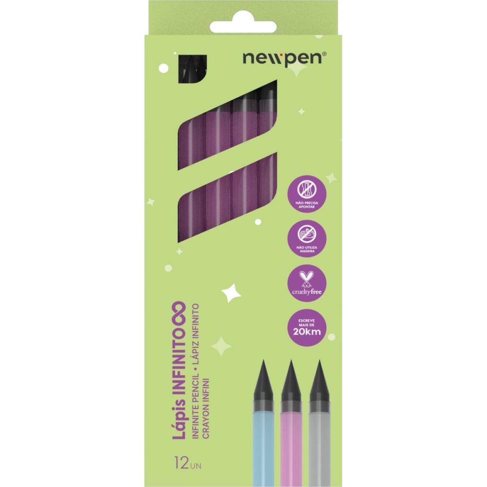 Lapis preto redondo infinito hb rosa translucido - newpen (cx.c/12)