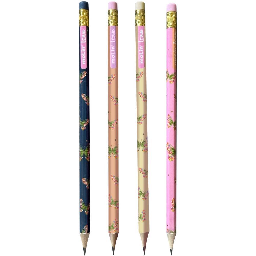 Lapis Preto Sextavado Decorado Love Borboletas - Molin
