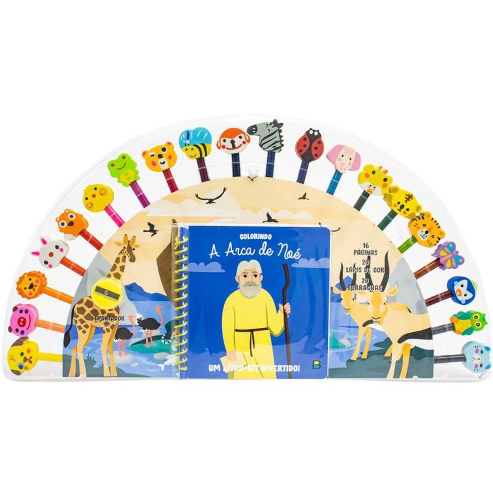 Um livro-kit divertido que encoraja as criancas a realizar os primeiros tracos com referencia de historias da Biblia com " A Arca de Noe ". Basta seguir o facil passo a passo a partir do aprendizado de linhas e contornos basicos. Arrisque alguns rabiscos e, quando voce se der conta, ja tera se tornado um grande artista! Acompanha 20 lapis de cor, 20 borrachas recortadas e coloridas e 1 apontador.