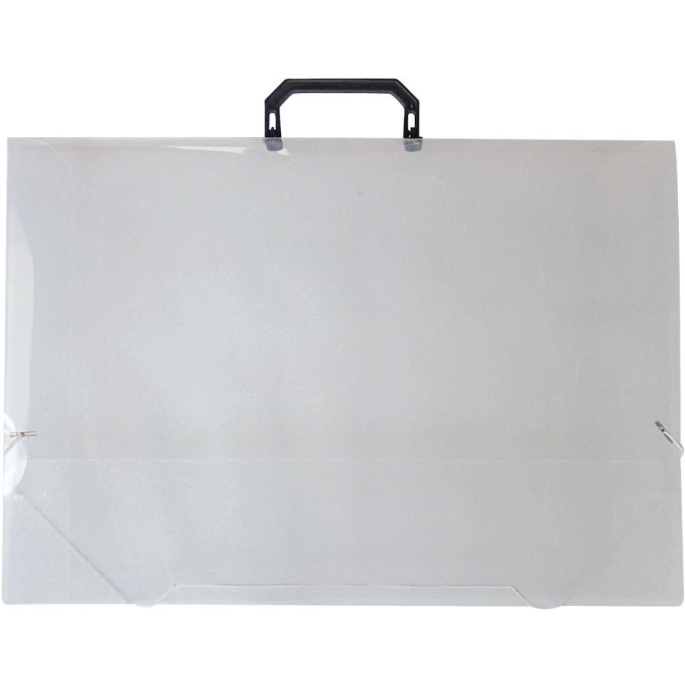 Maleta plástica transparente com alça e fechamento por elástico. Ótima para transporte ou arquivamento de documentos e trabalhos em grandes formatos (maiores que A4).