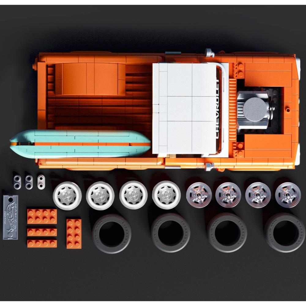 Detalhes fiéis à Chevy: vem com portas que abrem, suspensão ajustável e prancha de surfe na caçamba, como no original.