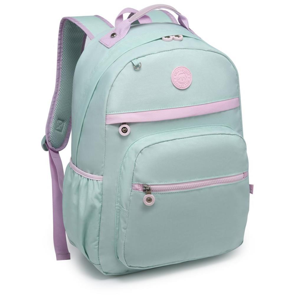 Com medidas de 45 cm A x 32 cm L x 17 cm C, a mochila oferece amplo espaco interno, sendo perfeita para cadernos, livros, estojos, pastas e ate notebooks leves. Conta com compartimento principal espacoso, bolso frontal com ziper e bolsos laterais, que facilitam a organizacao e o acesso rapido aos itens.