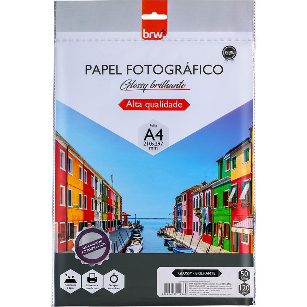 Papel fotografico inkjet a4 glossy brilhante 120g - brw (pct.c/50)