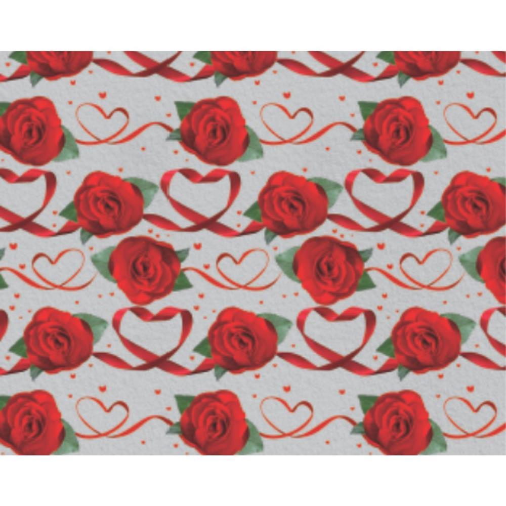 Papel Presente Bobina Couche 60 cm Mod.540 Rosas e Coracoes - V.M.P.