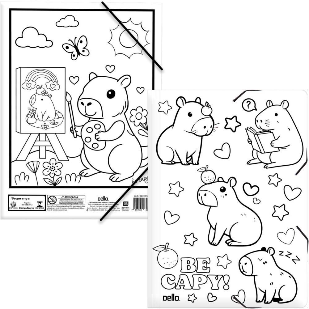Junte a isso a fofurice de outra tendencia, a capivara, e temos a Pasta Aba Elastico A4 Para Colorir Be Capy.