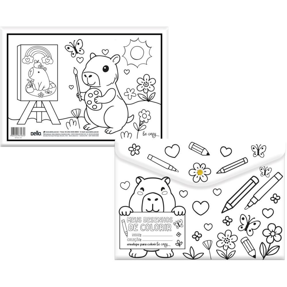 Junte a isso a fofurice de outra tendencia, a capivara, e temos o Envelope c Botao A4 Para Colorir Be Capy.