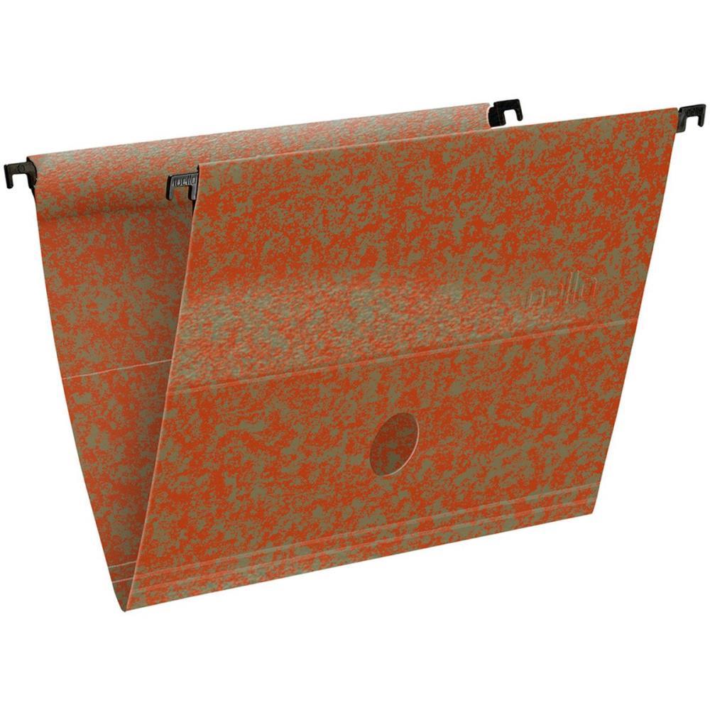 Pasta suspensa com papel kraft pintado de marrom (230g / m). Acompanha visor e etiqueta, grampo plástico e hastes plásticas removíveis. Diferenciais das pastas suspensas Dello: Abas coladas; possui 8 posições para grampo e 2 posições para arquivo de saco plástico. Arquiva dois ou mais documentos na mesma pasta; Visor e etiquetas com a maior rigidez do mercado facilitando o encaixe. Visualização de documentos e sistema de circulação de ar dentro da pasta, através de furo central; Hastes e grampos reciclados. Produto ecologicamente correto; Vinco marcador de páginas. Suporte para análise de documentos dentro do arquivo; transforma-se em mesa de apoio de documentos sobre arquivos de pastas suspensas; possui certificado de qualidade.
