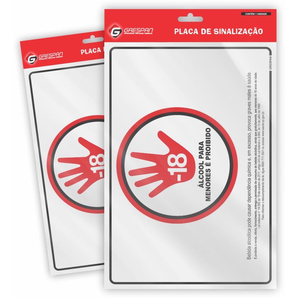 Placa sinalizacao - ALCOOL PROIBIDO PARA MENORES DE 18 ANOS