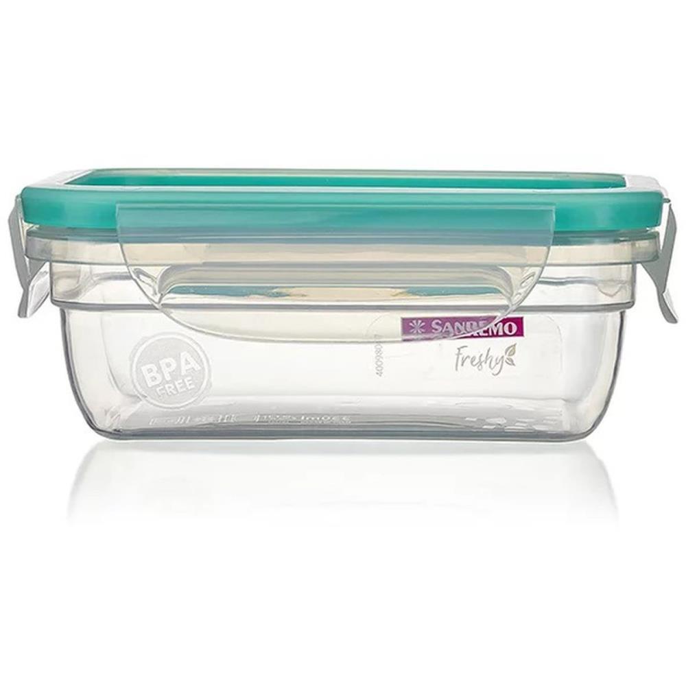 Pote com design moderno, inteligente e funcional possui borracha integrada na tampa, quatro travas com aquele “click” que garantem o fechamento hermetico e o melhor os potes da Linha Freshy sao modulares, o que permite um empilhamento perfeito e maior otimizacao do espaco na geladeira, no freezer e nos armarios. Com a linha Freshy da Sanremo, o colorido e o frescor dos alimentos vao dar mais vida e beleza na sua cozinha. • Transparente e com medidas de volume. • Fechamento hermetico nao vaza nada. • Desenvolvido com materiaprima virgem e BPA Free produto atoxico o uso continuo nao causa danos a sua saude. • Borracha fixa na tampa nao permite o acumulo de agua, mofo, odores e nem a formacao de fungos e bacterias. • Alimentos frescos por mui