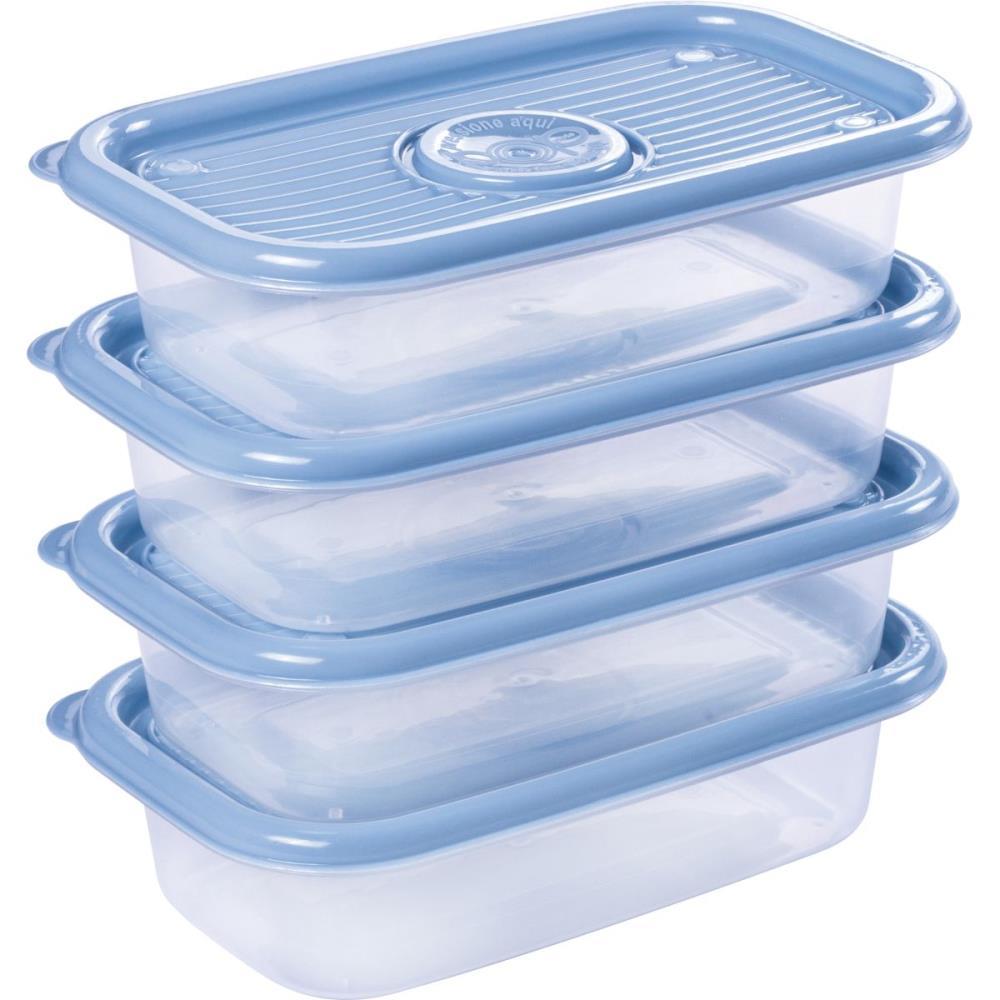 Conjunto de 4 potes de plastico retangulares. Volume: 520 ml cada. - Nossa linha tradicional e super versatil! - Base transparente facilita identificacao dos alimentos. - Livre de BPA e atoxico. - Pode ser levado ao micro-ondas. Alimentos com alto teor de gordura e acucar devem ser evitados. - Pode ser levado ao freezer. - Pode ser lavado em lava-loucas.