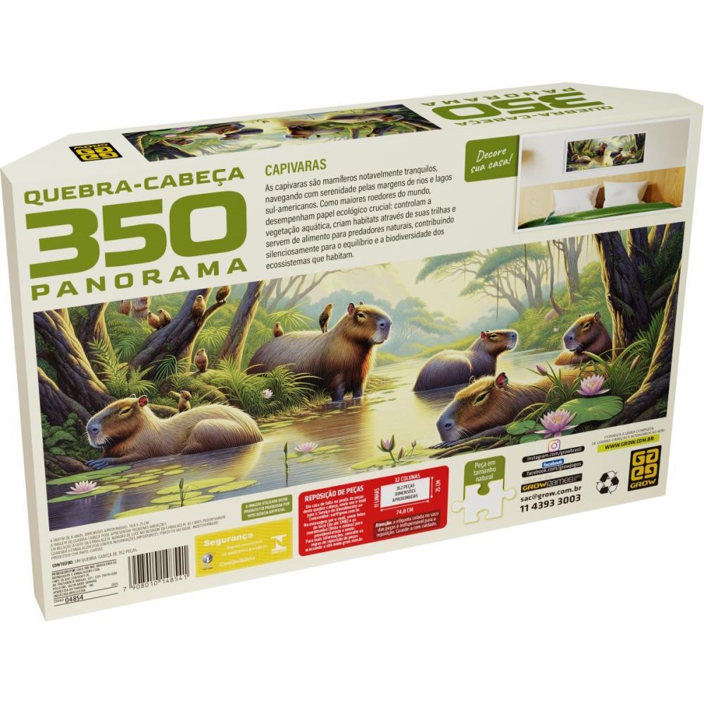 Neste simpatico e fofo quebra-cabeca, capivaras serenes vivem tranquilamente em seu habitat natural, uma exuberante floresta tropical com um rio tranquilo para relaxarem ao lado de lirios d’agua.
