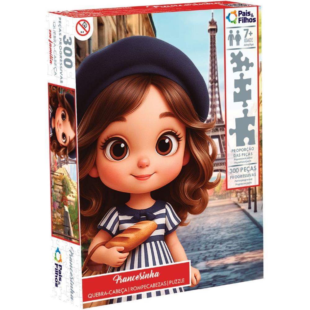 Q.C. em Familia – Francesinha 300 pecas faz parte da linha “Em Familia” e traz uma cena delicada e acolhedora, perfeita para momentos de uniao e relaxamento. Suas pecas progressivas, que variam de grandes a pequenas, permitem que todos participem da montagem. Alem de divertido, estimula paciencia, coordenacao motora e atencao aos detalhes.