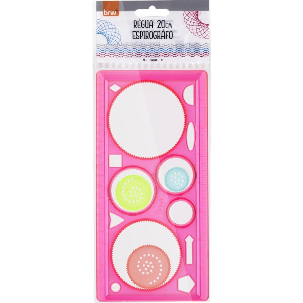 USADA PARA CRIAR DESENHOS GEOMETRICOS COMPLEXOS E PADROES ESPIRAIS DE FORMA SIMPLES E PRECISA. FUNCIONA POR MEIO DE UM SISTEMA DE ENGRNAGENS , NO QUAL UMA RODA MENOR GIRA DENTRO OU AO REDOR DE UMA ESTRUTURA MAIOR GUIADA POR UM CONJUNTO DE TRILHAS PERFURADAS. CAIXA COM 24 UNIDADES SENDO DIVIDIDAS EM 3 OPCOES DE CORES: ROSA, AZUL E TRANSPARENTE. COM ENGRENAGENS COLORIDAS. AUXILIA NO DESENVOLVIMENTODA CRIATIVIDADE E MOTOR. MEDIDA 1,1X2,5X0,7