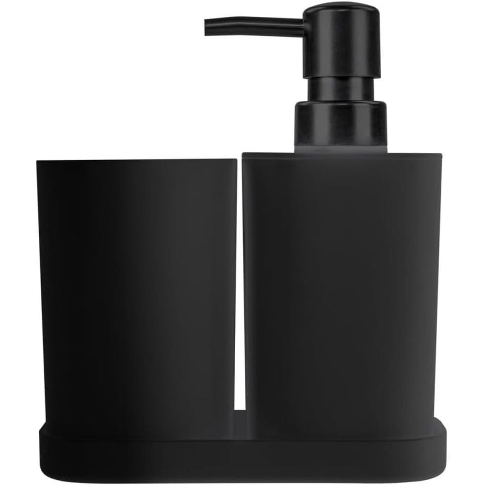 Conjunto para Banheiro com 3 Pecas Saboneteira, Porta Escovas e Dispenser, Cor Preta, Linha My Day, Ordene