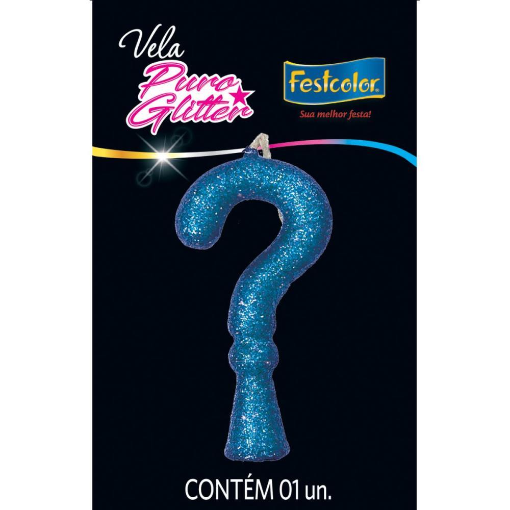 Vela para aniversario interrogacao puro glitter azul - festcolor (cx.c/10)